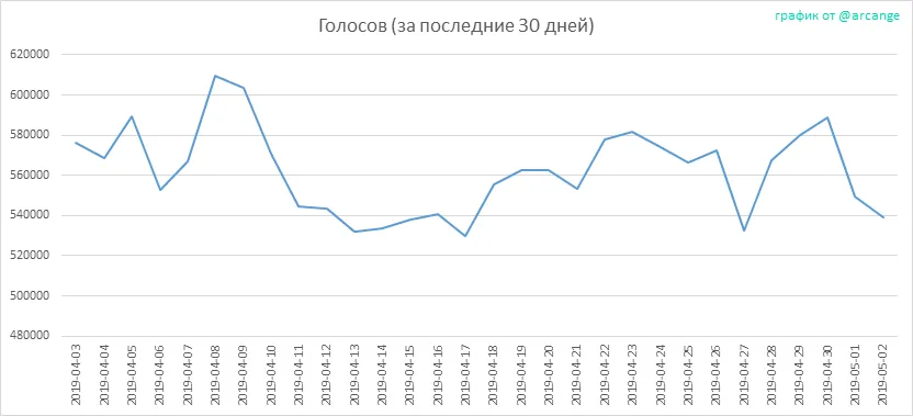 Эти графики показывают изменения количества голосов, с момента создания и в течение последних 30 дней.