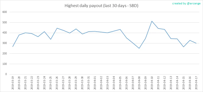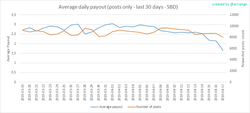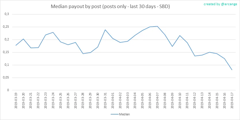 These graphs show the average and median payout per post for the last 30 days.