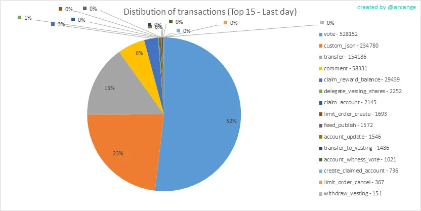 This graph shows the distribution of the top 15 types of transactions by number of operation performed on the blockchain.