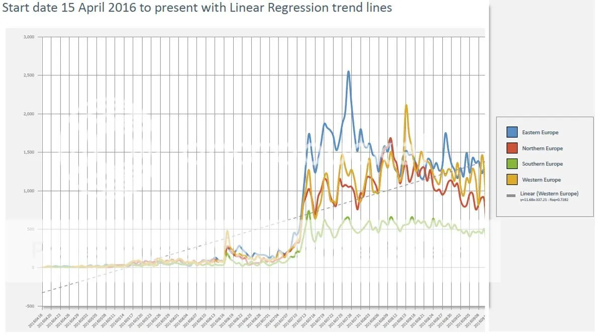The massive hype spike was mainly limited to the Americas and so is the subsequent downtrend with only a slight disturbance in Europe.