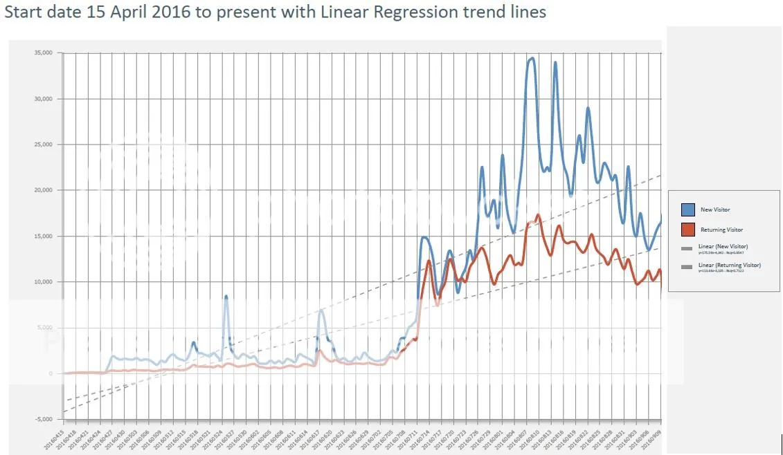 The red line or loyal users have once again stabilized at 10 to 12 thousand users per day which is slightly higher than the pre-hype spikes about a month ago.
