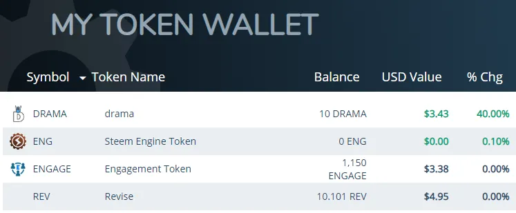 Last month I logged into https://steem-engine.com and created the ENGAGE token. The idea was to reward people who engaged with me with a little token of appreciation, with no expectations that the token would hold any monetary value. Surprisingly though, they are worth something - not much, but I see a $ sign and a positive value..