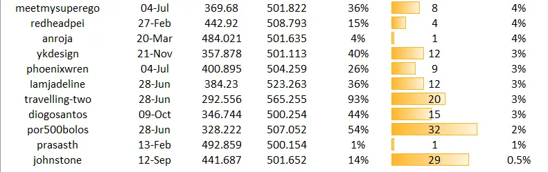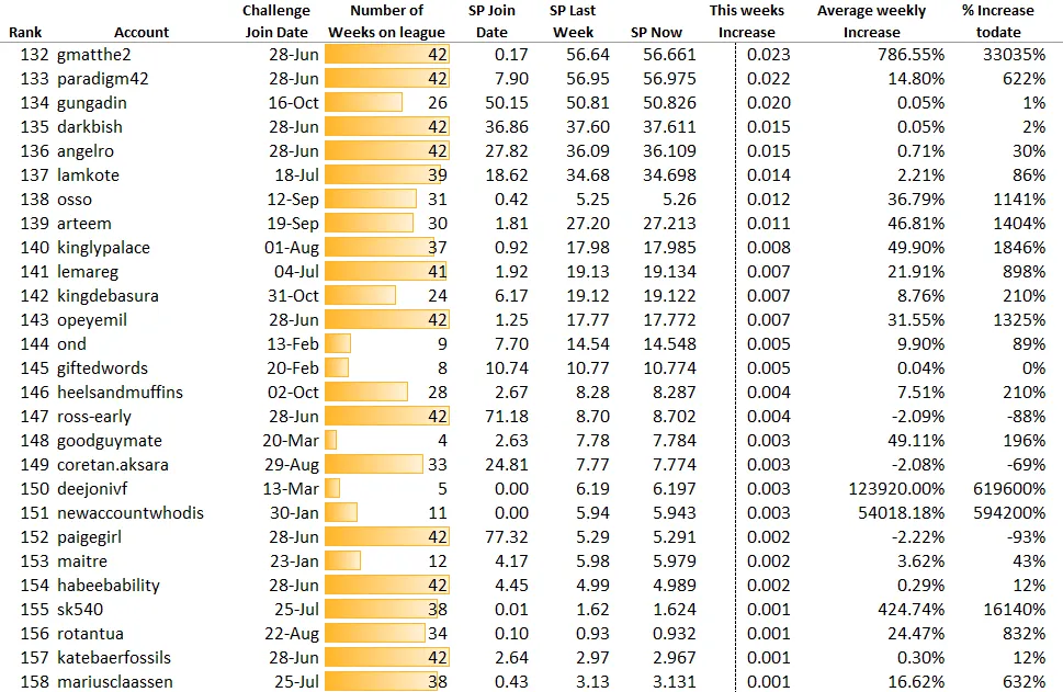 Congratulations also to @maquemali @wildhomesteading @curatorcat @ajorundon @usman119 @ifeoluwa88 @shaungerow @darthgexe as you were all in the top 10 this week with fantastic growth.