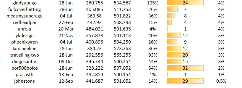 Congratulations also to @usman119, @nureza, @owasco, @anmitsu, @wildhomesteading, @tryskele @bluerobo, @tntdabomb as you were all in the top 10 this week with fantastic growth.