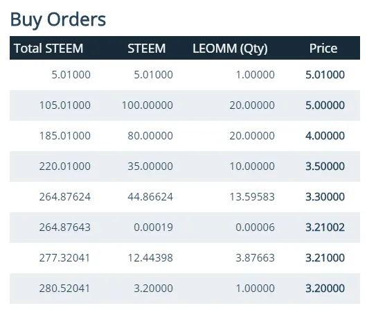 Today, there are buy orders at 5 steem a piece which means that even if I am impatient, I can sell them right away and make my capital back with a small profit, without counting the leo I have mined in the meantime: