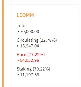 Of course I don't plan to sell them anytime soon. Unlike regular leo, LEOMM has a fixed circulation which thanks to all the burn initiatives by the steemleo team, actually becomes smaller and smaller. As you can see below, over 77 % of all LEOMMs are burned as of today:
