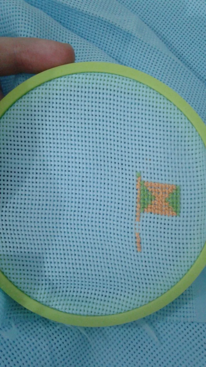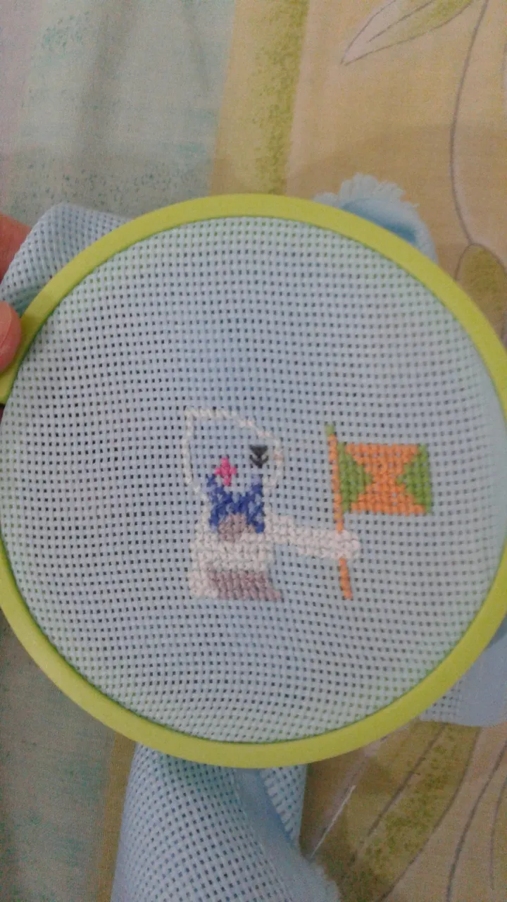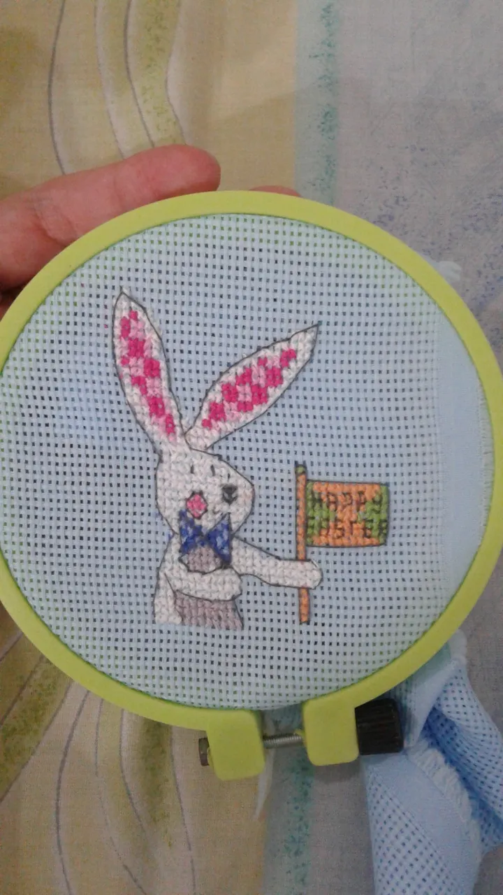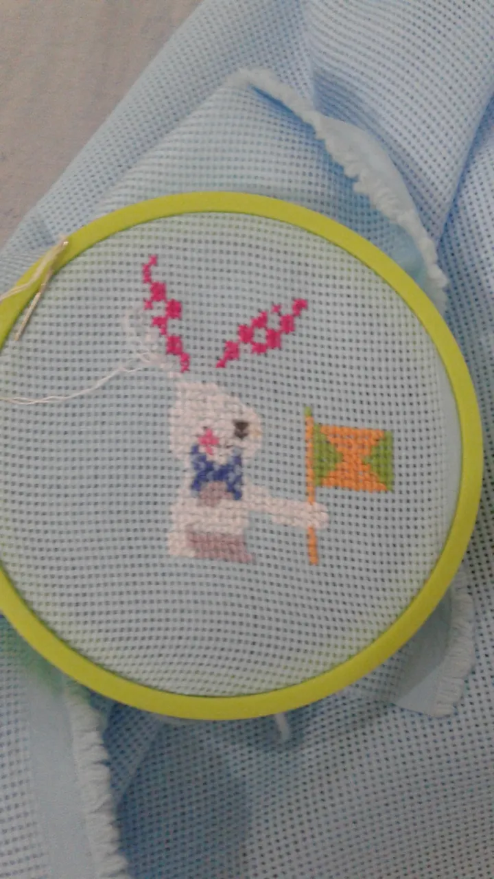 Bold all with backstitch only one strand of dark grey color and also make the happy easter on the flag.
