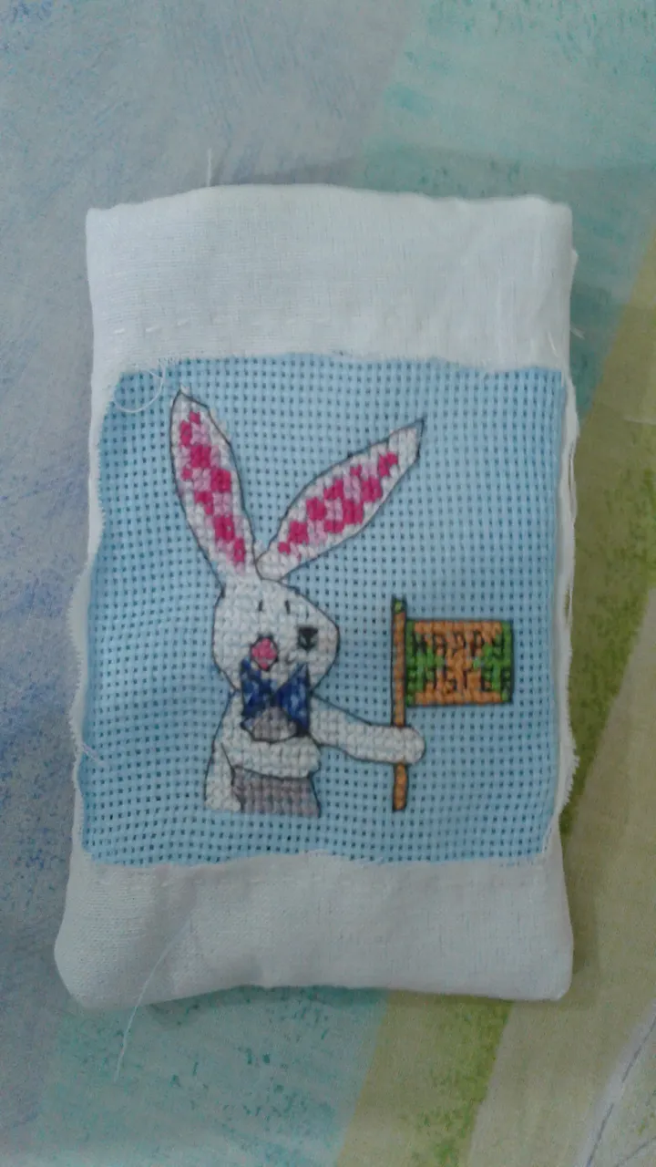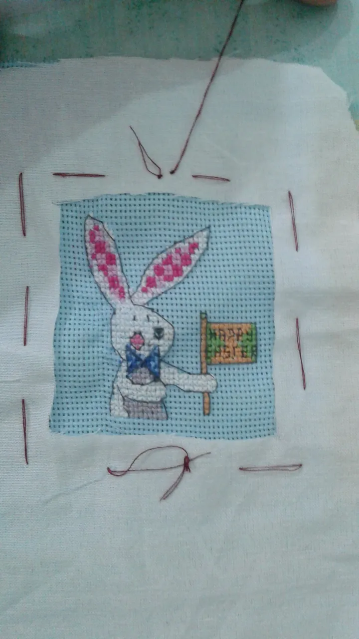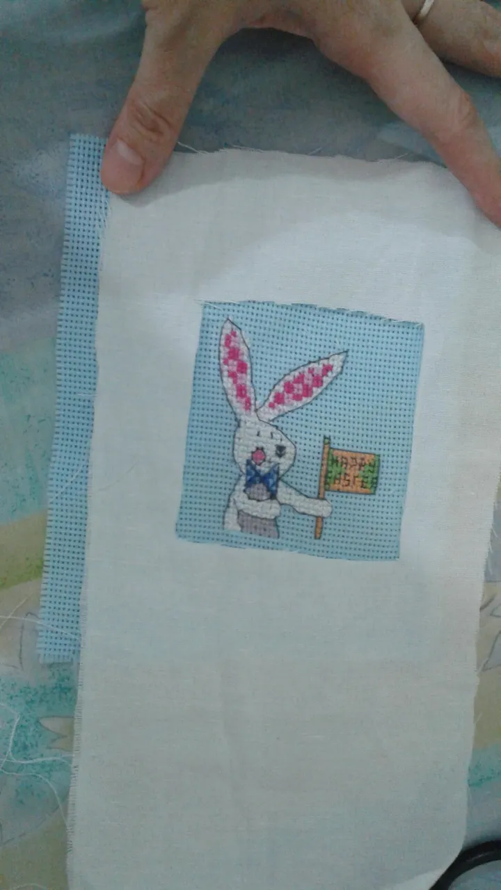 Measure and cut fabrics then make a square inside for the rabbit stitch, cut it out.