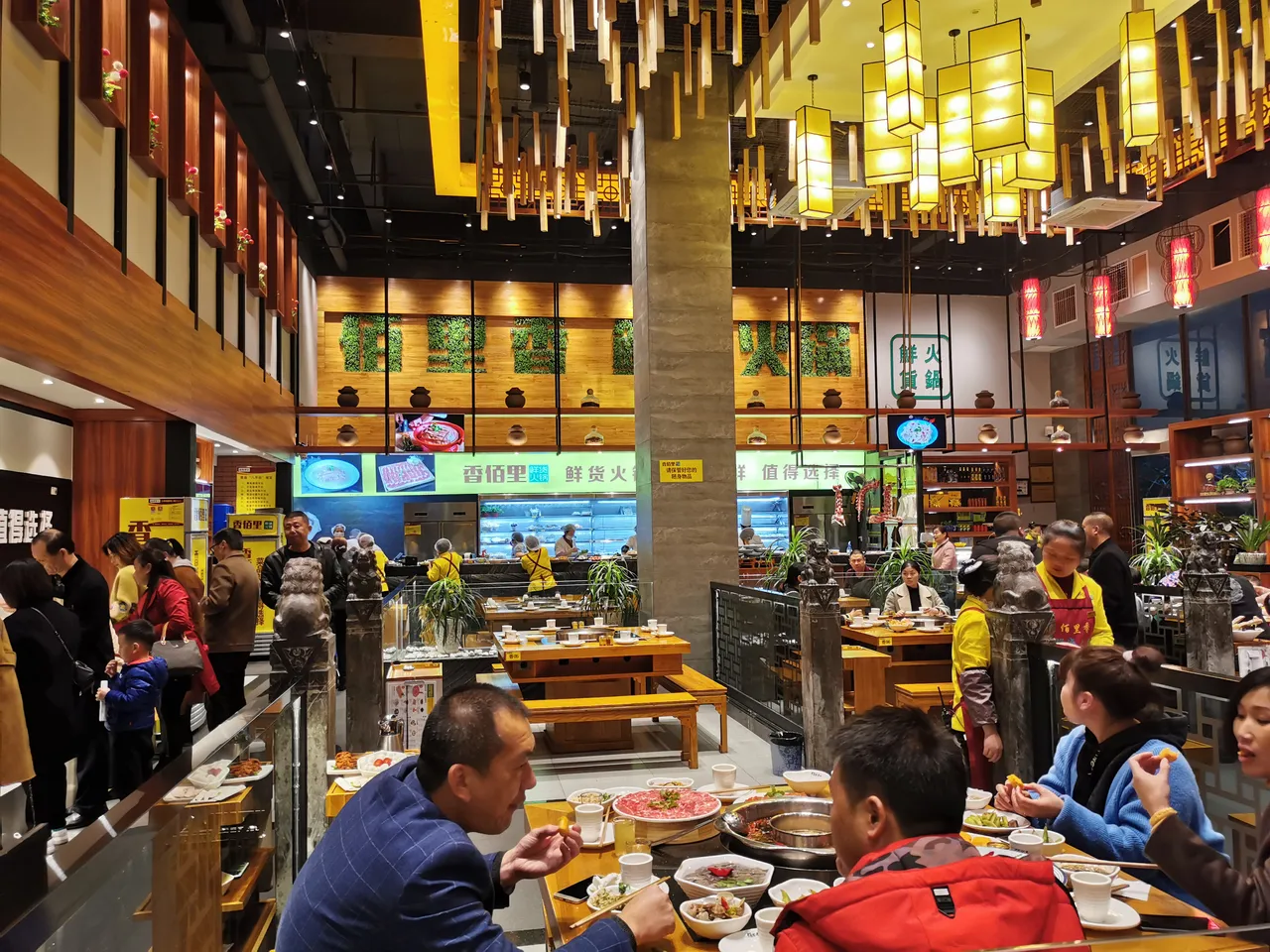 香佰里的装修格局和风格是我所体验过的火锅店中最令我感到舒适的,因其一楼层高估摸有八九米,吃火锅本身就是水蒸气四起、热量巨大的事情,层高太矮会带给人闷热压抑的感觉。