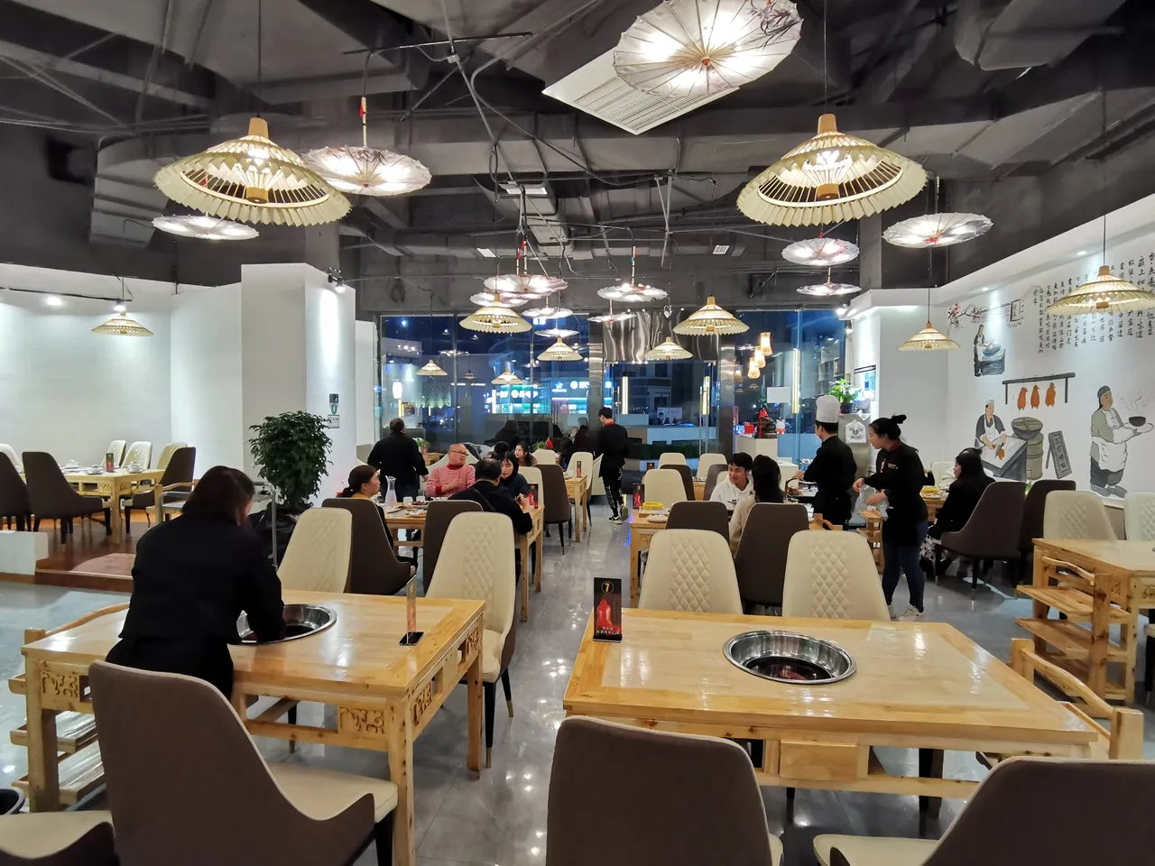 最喜欢的还是墙上的壁画,画着古代的建筑、街道以及老百姓,趣味十足,在这样的环境下吃饭挺有意思的。