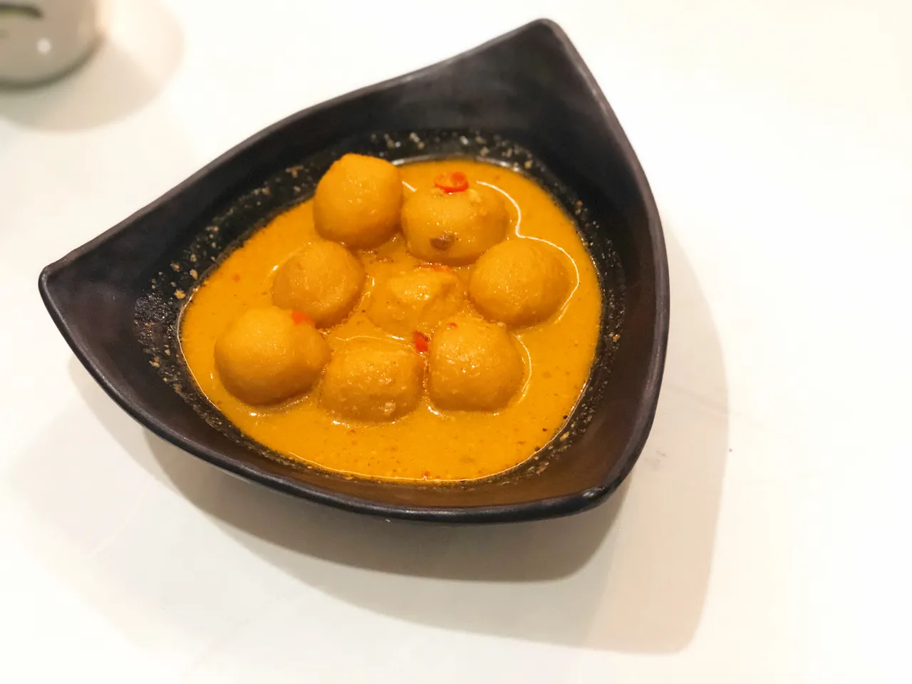 正像它的名字一样,既有咖喱味又有一丝辣味。味道我能给8分,但鱼蛋的品质我只能给5分,一尝就知道是市场上廉价的面粉制鱼蛋。