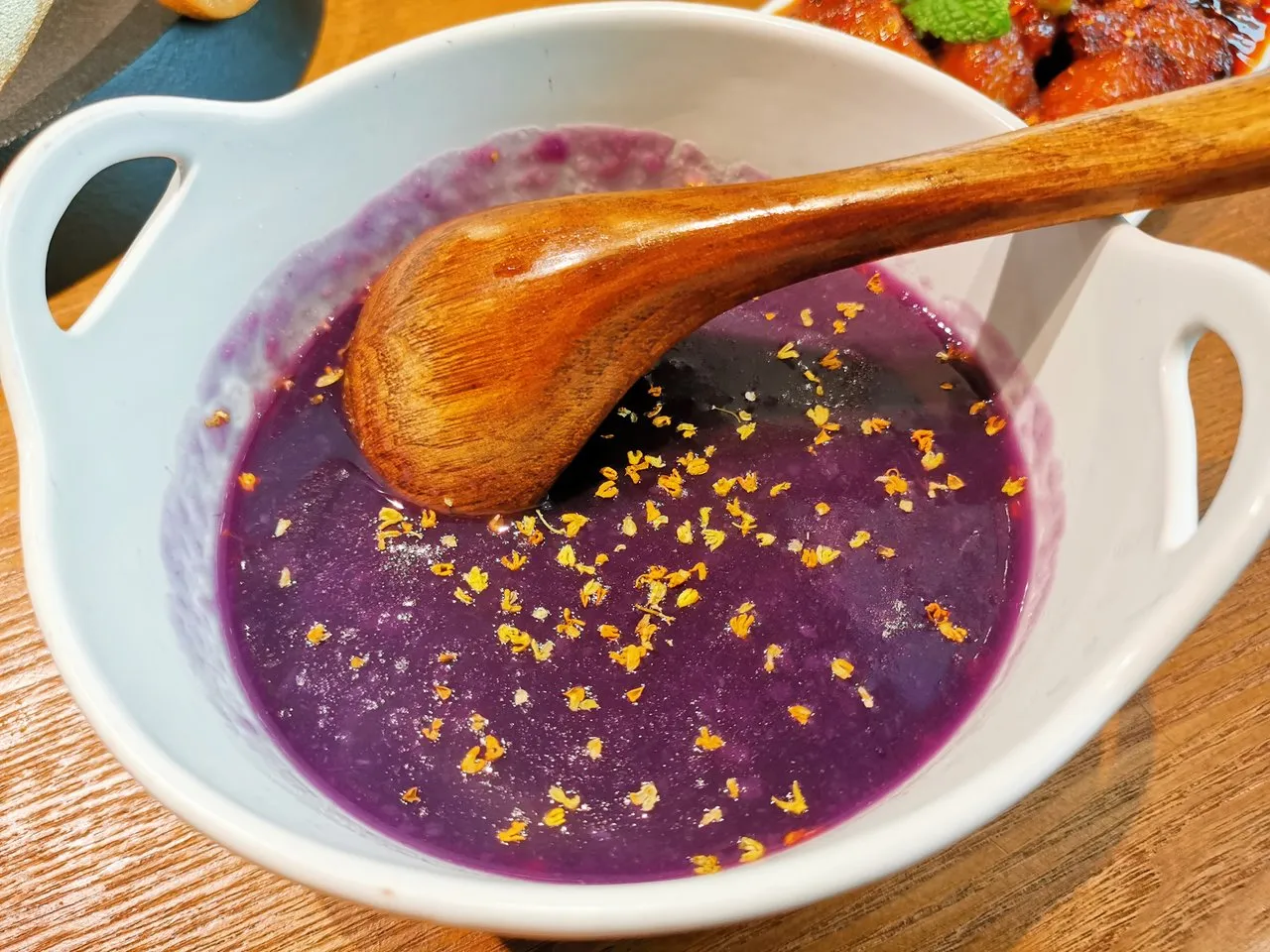 如果你喜欢吃甜点,那么我强烈推荐你点这道桂花紫薯羹。它不仅是外表诱人,味道同样很好。