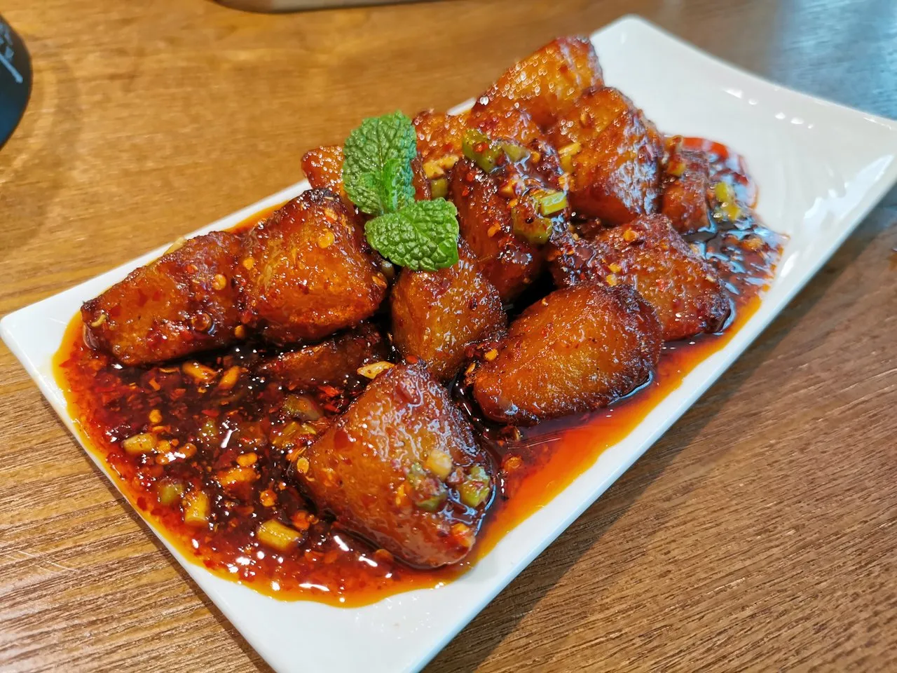 主材料是豆腐块,形状与臭豆腐相似,豆腐上面满是佐料,小米辣、芹菜、酸菜、香菜,豆腐外焦里嫩,辣味也刚刚合适,十分推荐。