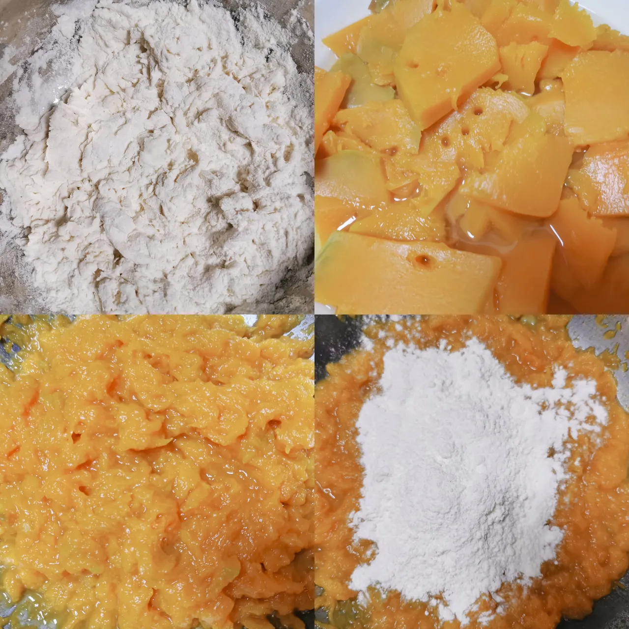 准备材料:面粉、发酵粉和南瓜适量