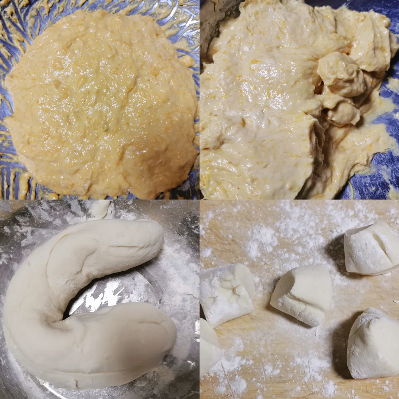 将适量面粉加水和发酵粉揉成团状同样待其发酵膨胀,发酵时间因天气而异,冬天大致3小时左右。