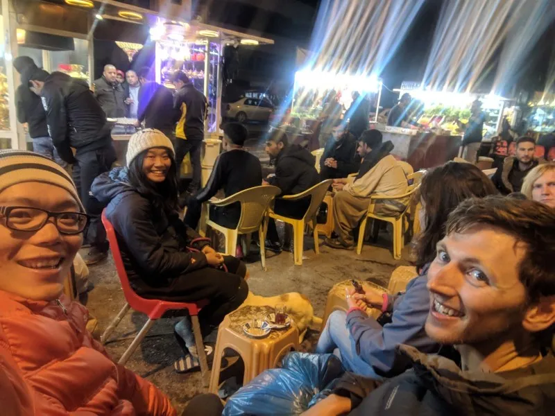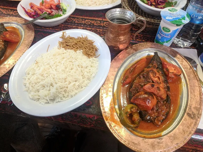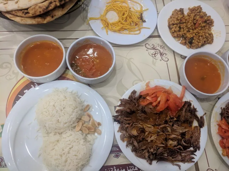 In a restaurant with our host Saroo, the table literally had no space left for anymore food so we had to say goodbye to some half eaten sides. Everything was delicious but unfortunately we couldn't eat every single thing on the table. Our host said some food will be used to help the refugee camps nearby.