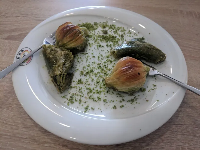 It is a very sweet dessert pastry, made with filo, nuts and syrup. If you're not a sweet tooth you'll only want 2, and no more! This sweet is popular in the Middle East and Central Asia.