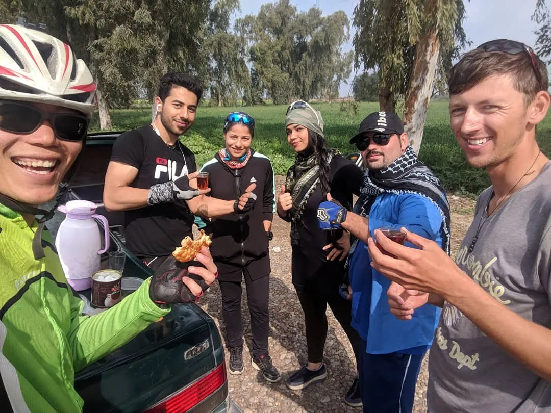 On the last day, the group planned to cycle with us to Shoush (100 km away) with a car escort carrying our bags. We were all going fast, it felt like we were flying without our bags. But with great speed there's an increased risk of a crash.