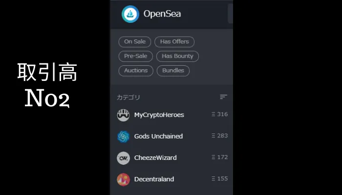 ゲーム内マーケットもそうですが、Openseaでも売買が可能になってます。