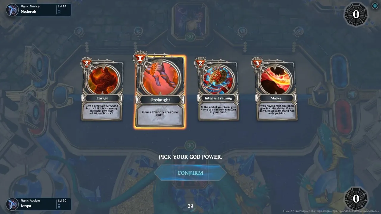 WarデッキのGodパワー『Onslaught』をつかったプレイ動画の紹介になります。