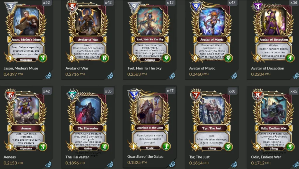 マーケットが始まった当初は0.1以下のカードがほとんどだったのですが、今は0.2ETH超えるものが続々と