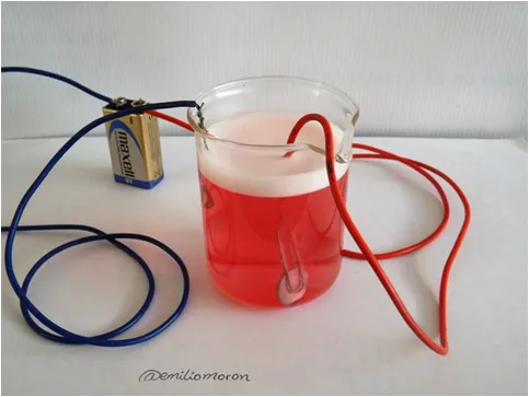 • Solución de HCl al 15% como medio electrolítico (yo utilice una solución comercial limpiadora, por eso el color rojo del líquido)