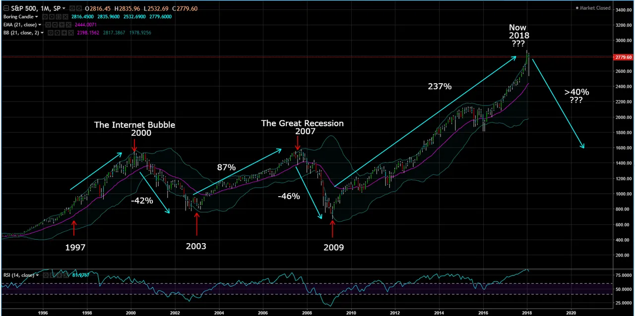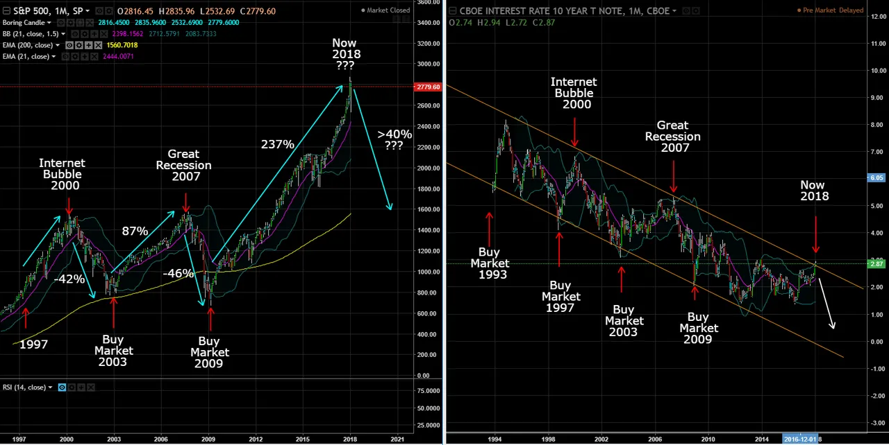 If the charts are any indication of what happens next, based on history you have to be ready to hit the sell button. I anticipate when the market tanks within the next 20-30 months it will crash at least >40%. Because of the tax cuts recently (which makes no sense in an expanding economy), I anticipate the yield going above the upper channel this time. If the yield on the 10 year bond reaches 3.5% - 4.0%, the market may crash sooner than the 20-30 month target. Rest assure I will be here to tell the SteemIt Community when it’s time to sell.