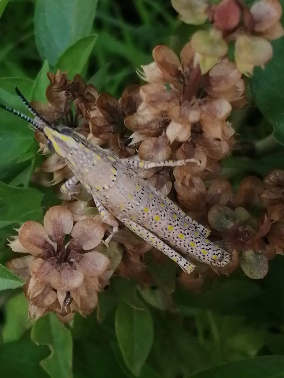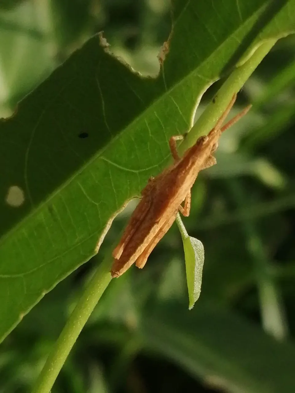 I never seen them but when I start touching the weeds, all of them hopped in so I checked all the plants. Amazingly I found a lot of grasshoppers with different colors.