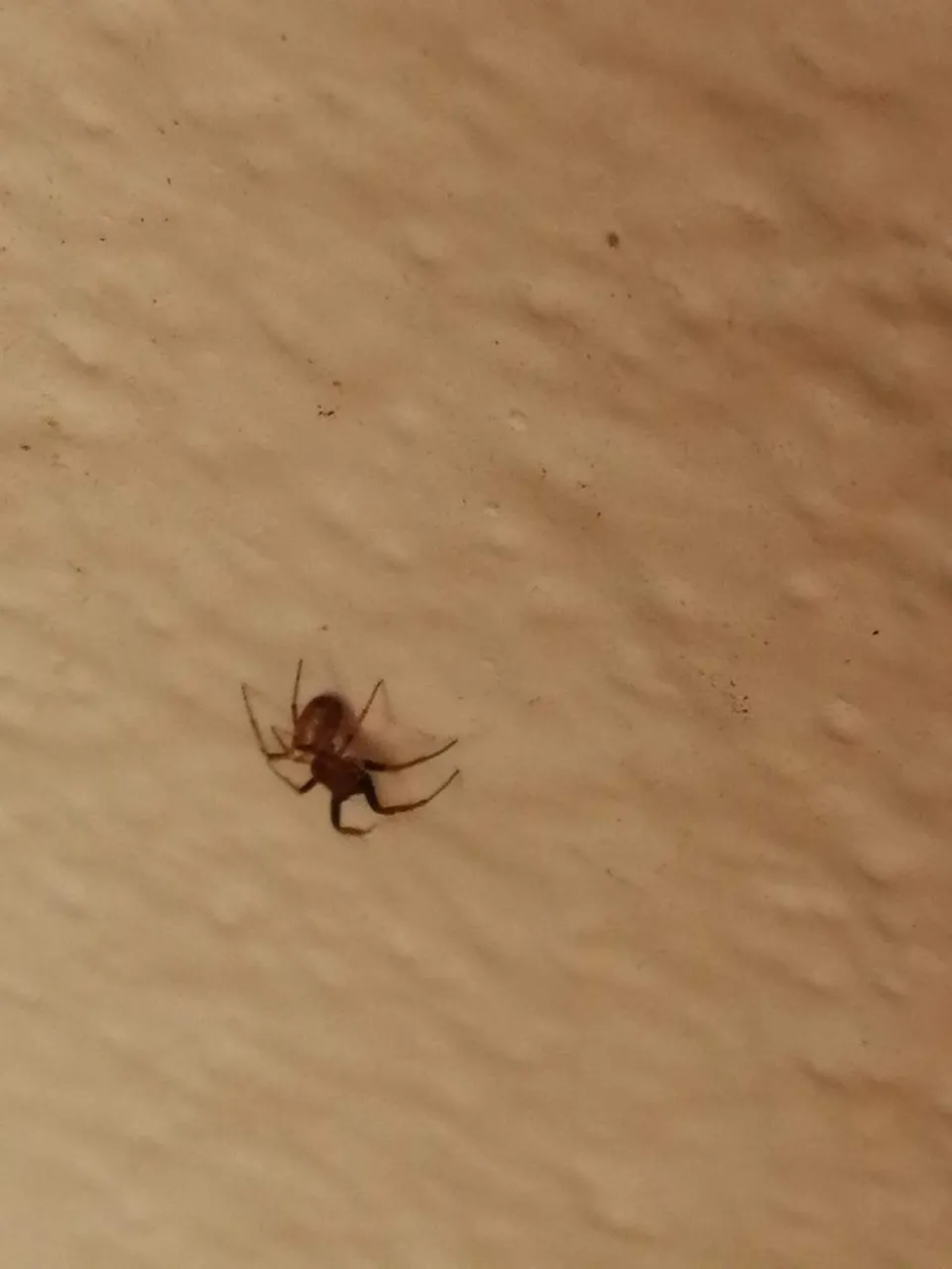 The spider wanted to escape by crawling on the wall, I let him go but I took a picture.