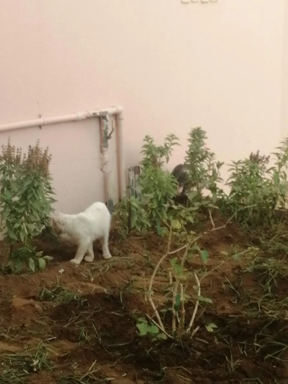 It's not an easy job for me because I have a pain on my hips or lower back. I can't sit down. It took 2 hours removing the weeds but I never feel tiredness because my pet plays in front of me.