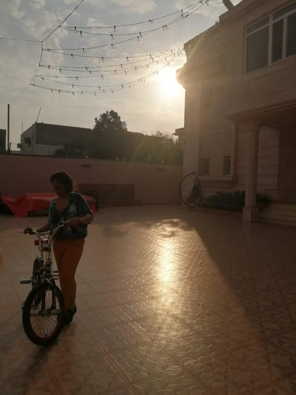 While my girl was playing her first ride on her bike, she wasn't able to have a long run. I still hold and helped her.