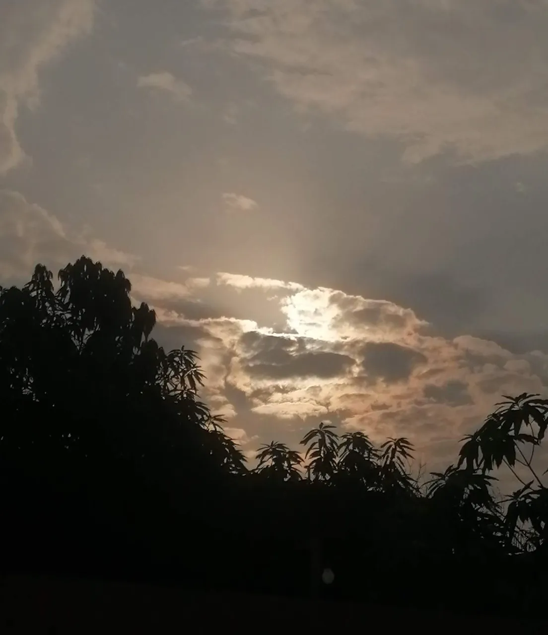 What a beautiful morning when I saw these clouds over the sunrise I saw a beautiful face smiling at me. The leaves of the mango tree of our neighbor added perfect attractions. It literally meant the mother Earth beauty of nature.**