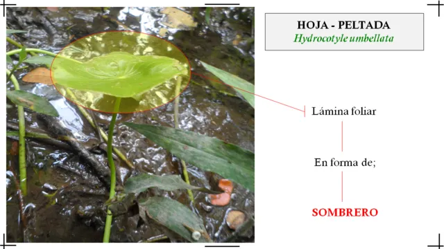 Imagen 7. Lámina foliar peltada de Hydrocotyle umbellata , en forma de Sombrero. Autor: @lupafilotaxia.