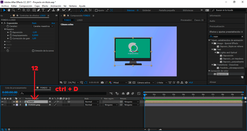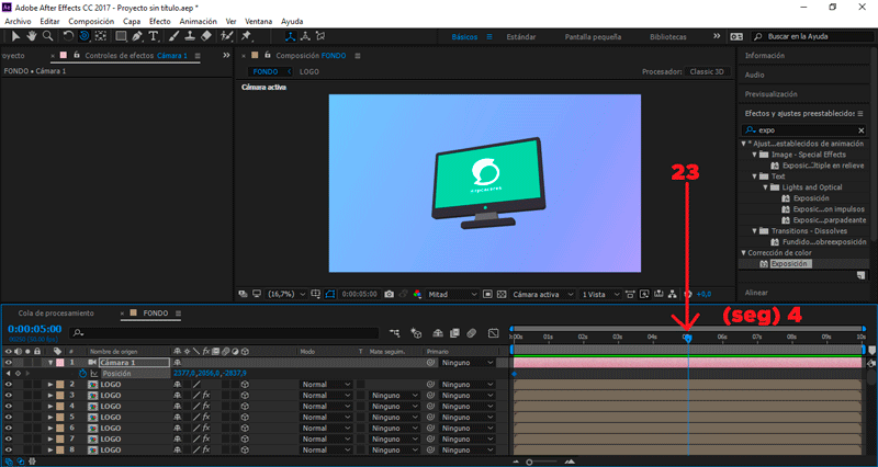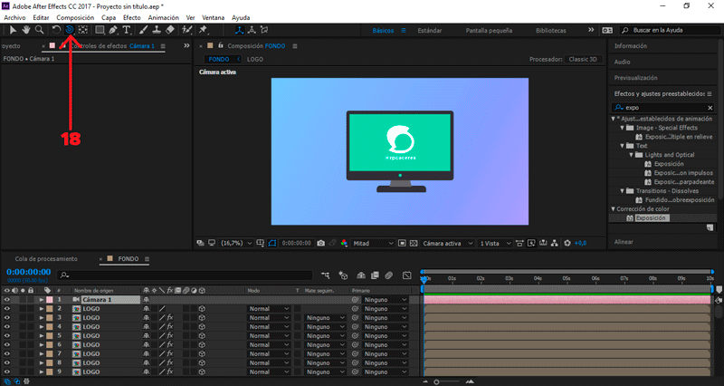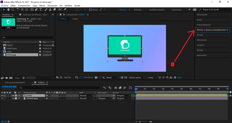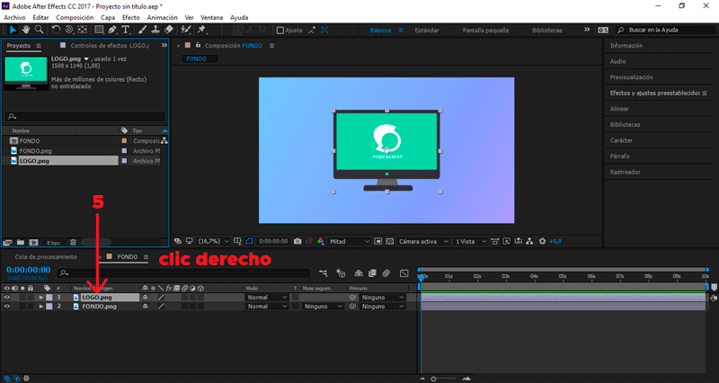 Seleccionamos nuestro logotipo, presionamos clic derecho Precomponer