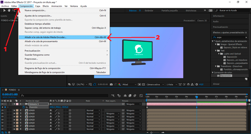 Presionamos Composición/Añadir a cola de Adobe Media Encoder...