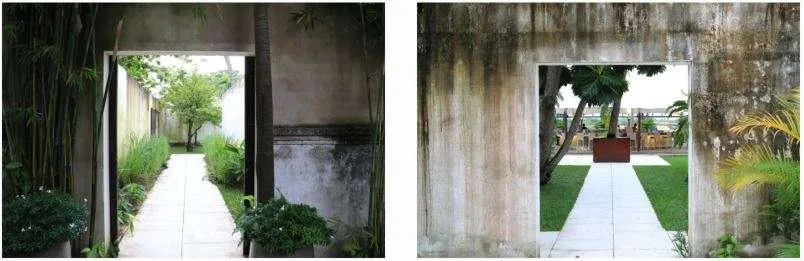 Private garden 에 들어서는 듯한 느낌의 진입로를 따라 들어가면, 시간이 칠해진 벽 너머로 The Deck Bar 가 보인다.