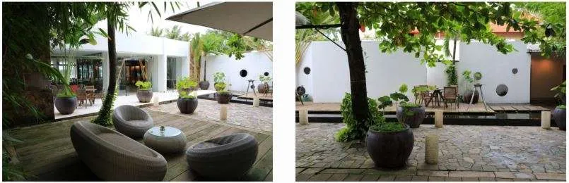 여럿이 시간을 함께 보내다 잠시 떨어져 나와 개인적인 또는 둘 셋 작은 무리의 시간을 보낼 수 있는 외부 공간이 훌륭한데, 충분한 간격을 두고 앉을 곳을 마련해 두어서 private 한 시간을 보내기 안성맞춤이다.