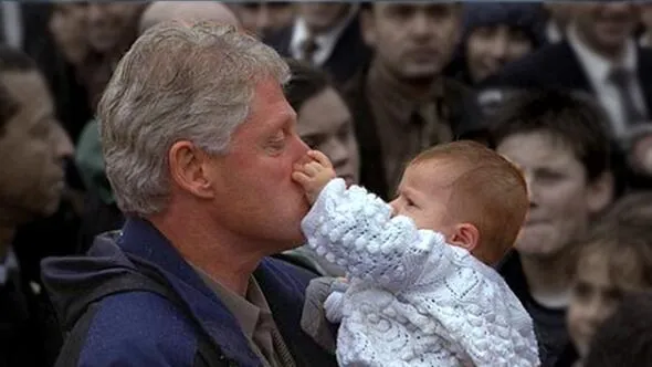 Yani bunu Clinton'ın burnuna dokunan Erkan bebek gibi görebilirsiniz, Clinton'ın saygınlık puanı artmıştır çünkü daha saygın biri, bir bebek ona elini uzatmıştır.