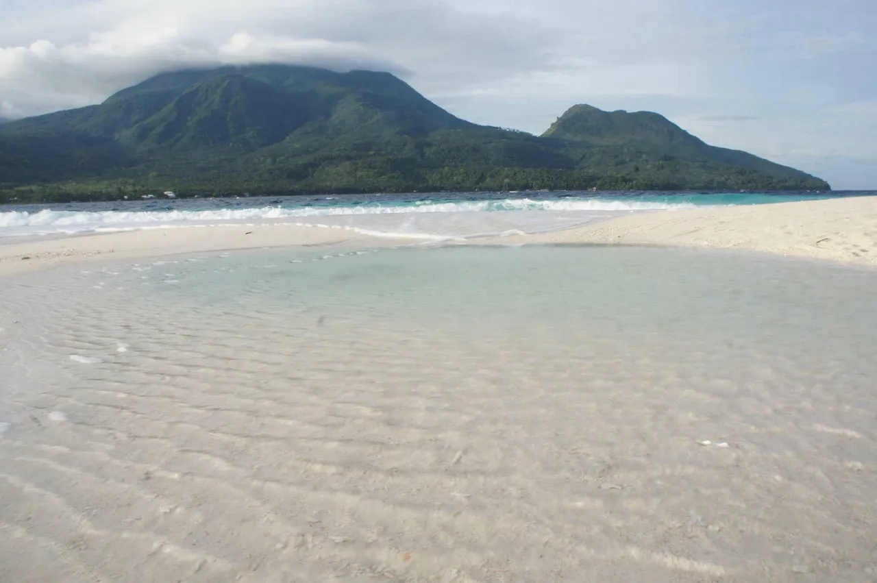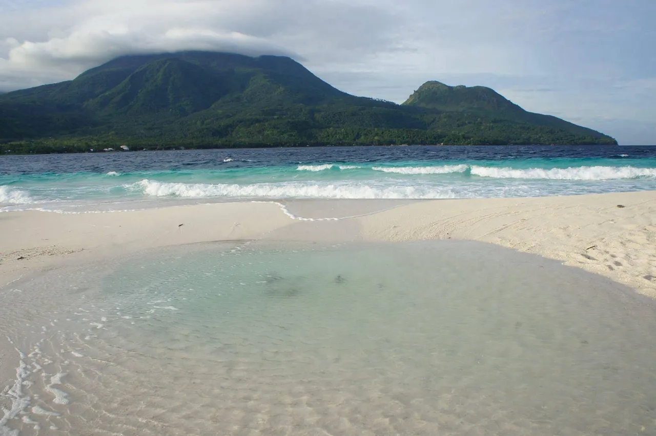 Camiguin Island can be found east of Siquijor Island. Though the two islands have almost the same size and shape on the map, but the two aren't twins. Camiguin is a volcanic island. In the foreground is White Island.