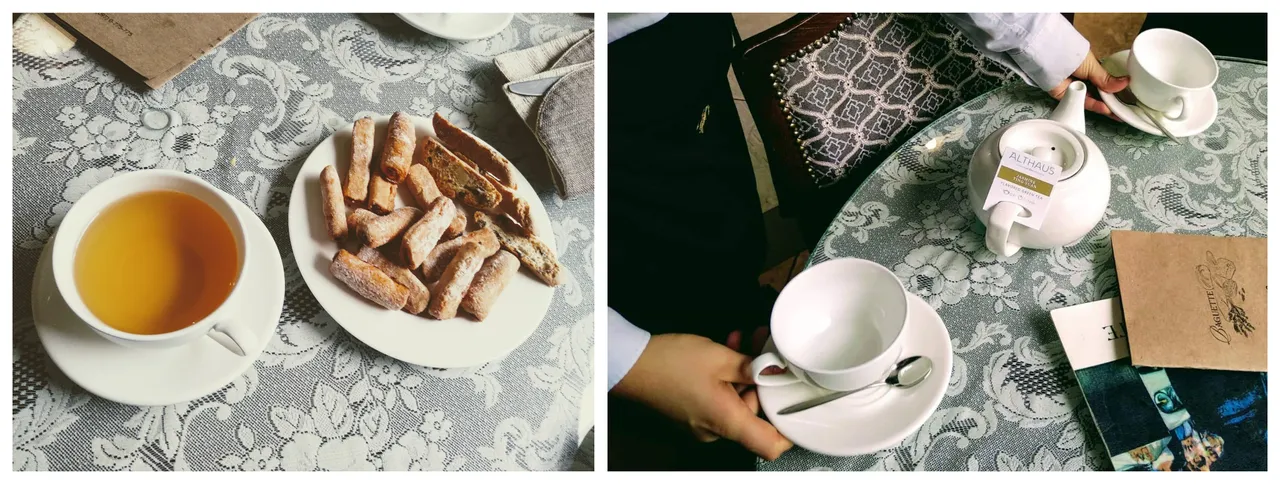 We ordered tea and selected a few flavors that looked the most delicious to our thinking. We were brought tea in a wonderful white service.