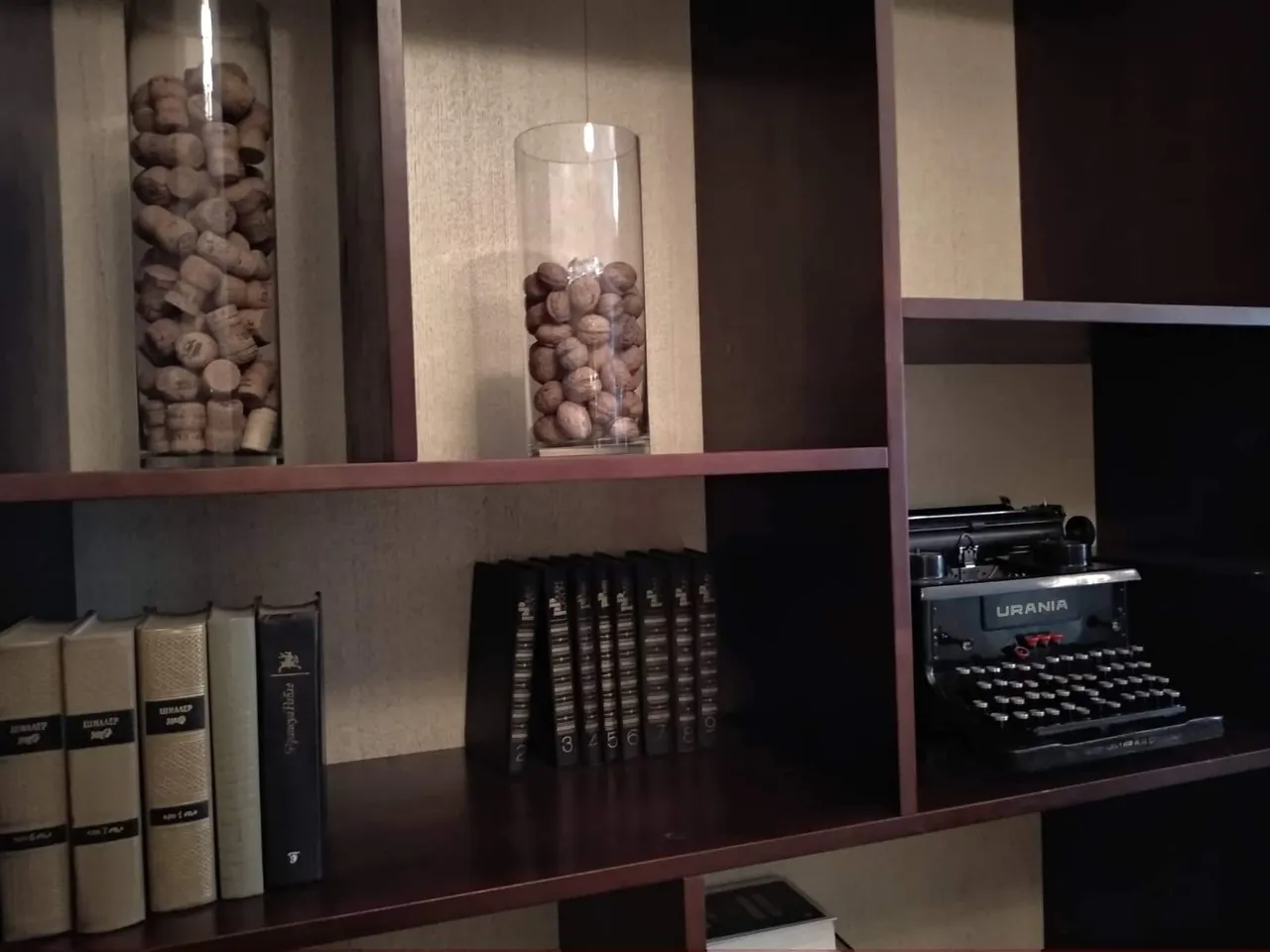 On the other hand, there are shelves with different cans of nuts and corks, and here you can choose some books to read. You can even see the old printing press here.