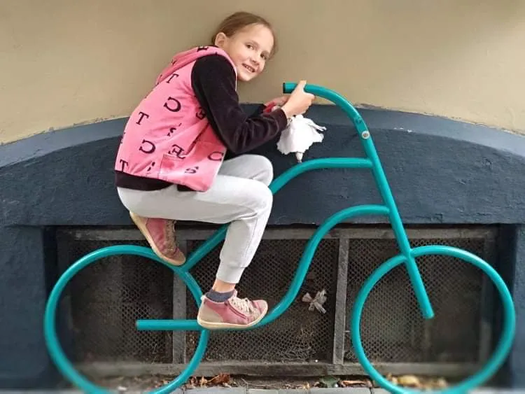 My sister Darynka, really liked this element of decor. And she even decided to check out the convenience of this transport in practice but unfortunately it did not drive.👍😁