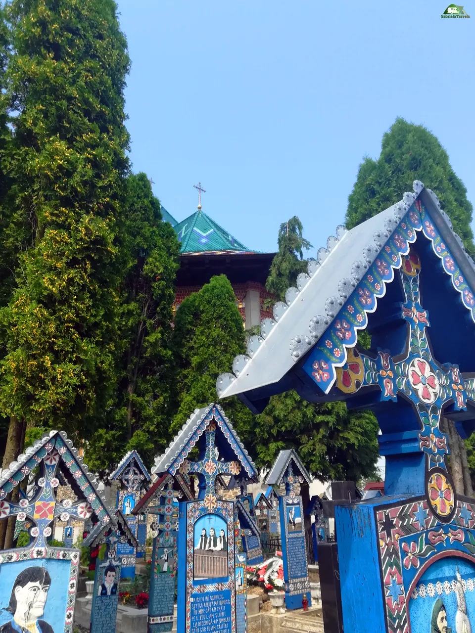The main attraction, or at least the first thing that people notice - are the colourful crosses of graves and the little paintings on the crosses, each one of them showing the occupation/passion and different life sequences of those who are resting now.
