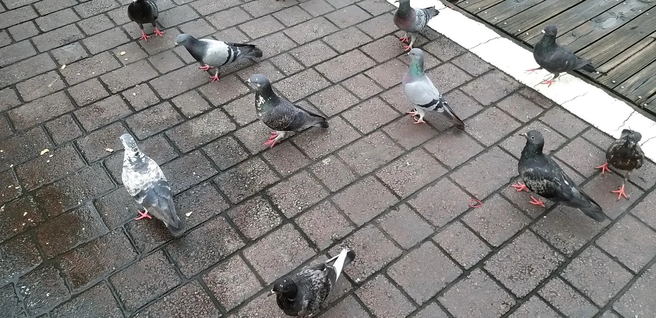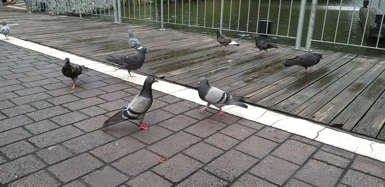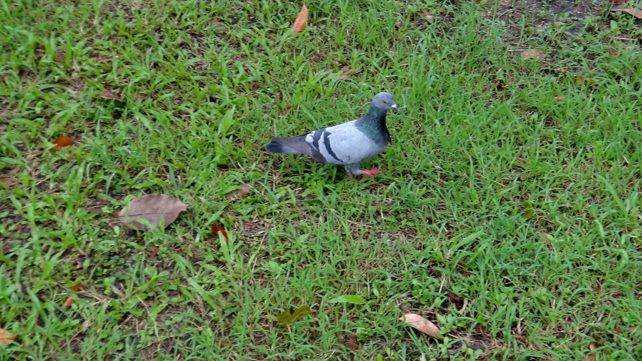 Pigeons you will see in parks all around the world the parks are a good source of the foods as they eat seeds , fruits and some plants and what ever food humans give them.
