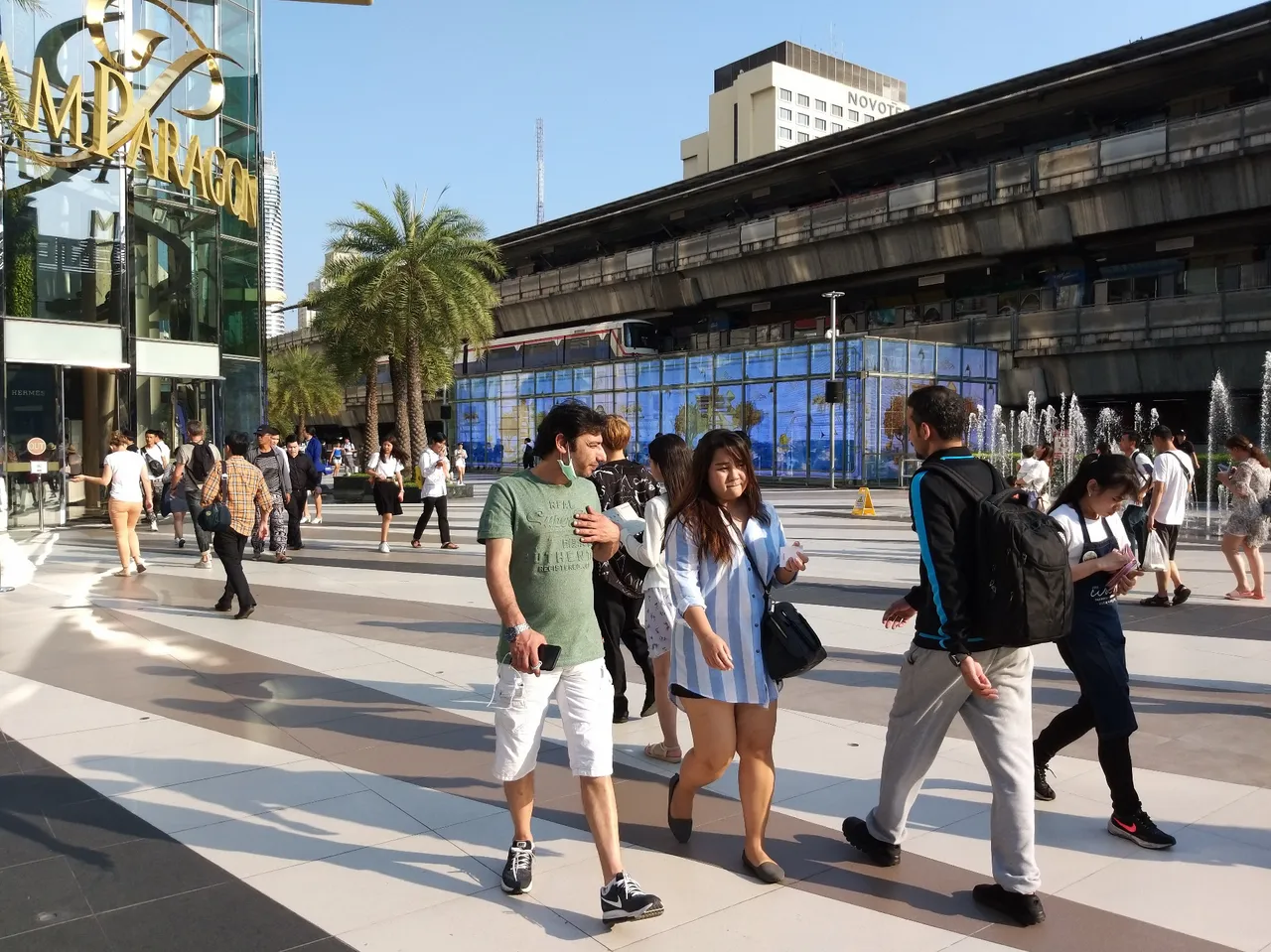 Once you have got to MBK Center either by Skytrian , Taxi or Tuk Tuk and you are done their you can walk back along the skywalk bridge which will lead you into the Siam Discovery Mall and walking through that mall will lead you to Siam Paragon Mall or you can get the Skytrain from MBK Center back to Siam Paragon Mall only one stop from MBK Center.