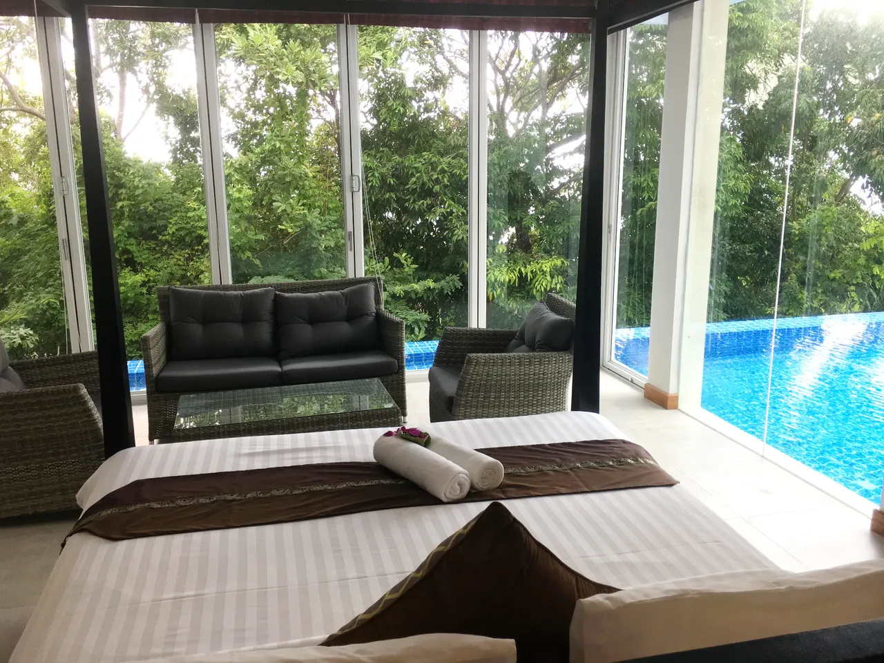 This villa has three amazing pools and all face out to the Andaman sea and most of your time can be spent relaxing in these pools watching them terrific sunset each evening and if that isn't enough to take-in , the villa had a private cinema and a gym. There was also a lovely barbecue area if you wanted to throw a couple steaks on the barbecue after your workout.