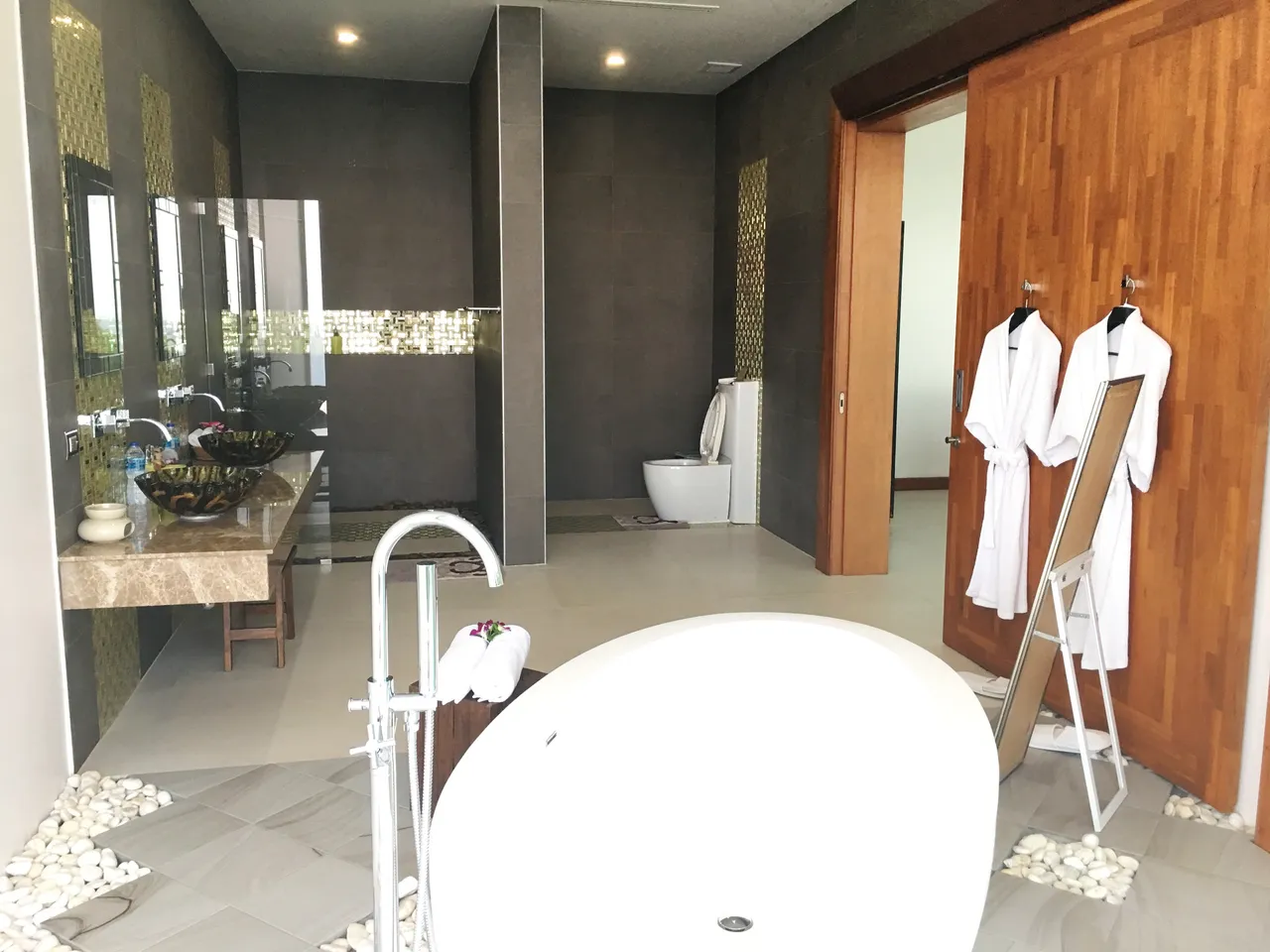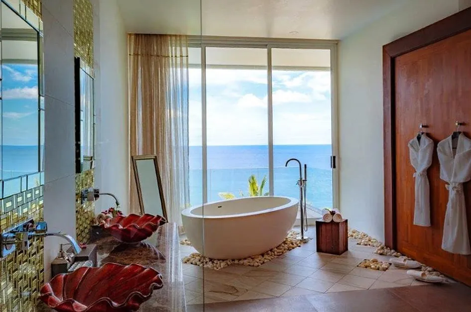 Every bedroom comes with all the luxury imaginable they are all like a self contained studio apartment with en-suites having shower and bathtub to relax in after a long day of doing nothing but relaxing...lol..and are all facing the ocean so you don't miss out on them awesome views and gorgeous sunsets.