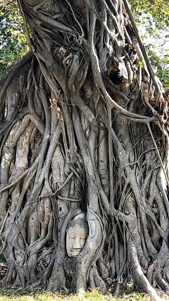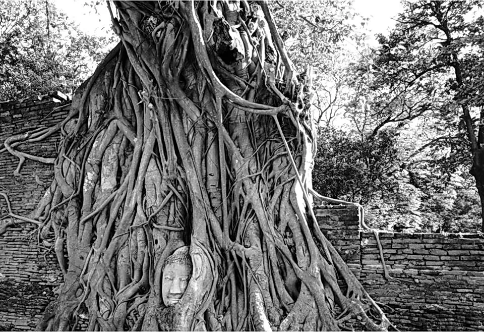 The Wat Mahathat Temple area in Ayutthaya remained abandoned and had lots of overgrowth over the remains it was registered as a National Historic