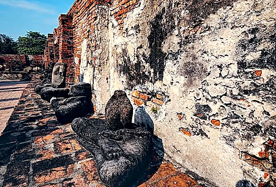 Unfortunately this beautiful Temple in it's time when invaded by the Burmese army the temple was destroyed by the Burmese army and vandalized in many ways many Buddha images were destroyed and Buddha heads lopped off.