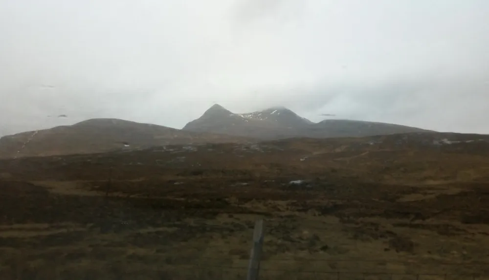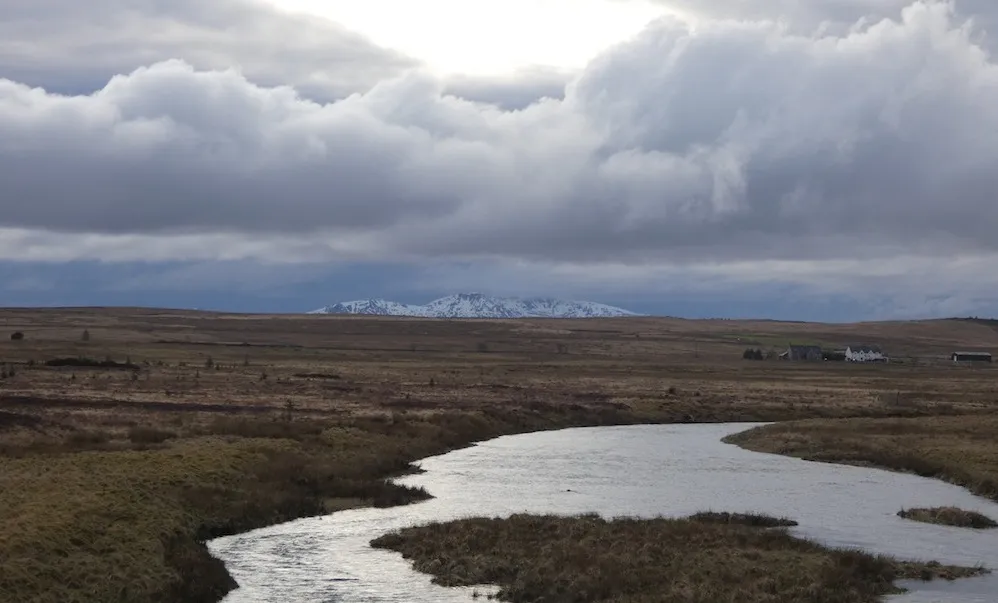 Zooming in on a snow-laden Ben More Assynt in the distance.